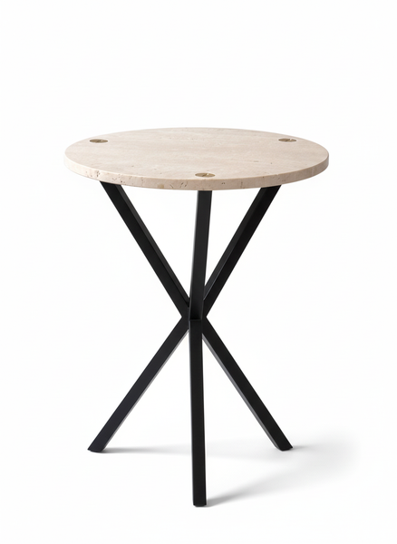 Det höga sidobordet passar perfekt som sängbord eller högt sidoord vid en fåtölj där du vill ha lampan eller din kaffekopp inom bekvämt räckhåll. Travertinens varma ton och naturliga patinering gör att bordet utvecklas vackert över tid.